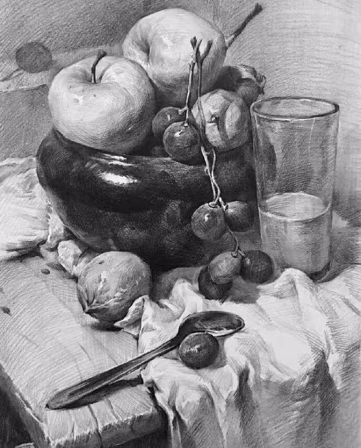 In 12 classes, you’ll learn the techniques of drawing from the beginning. The drawings above are by students who joined this course as absolute beginners. You will build the skills by rendering objects and environments with a teaching method found nowhere else. All drawings will be created in monochrome (black and white) to focus on the basics: light and shadow, line, and dimension.