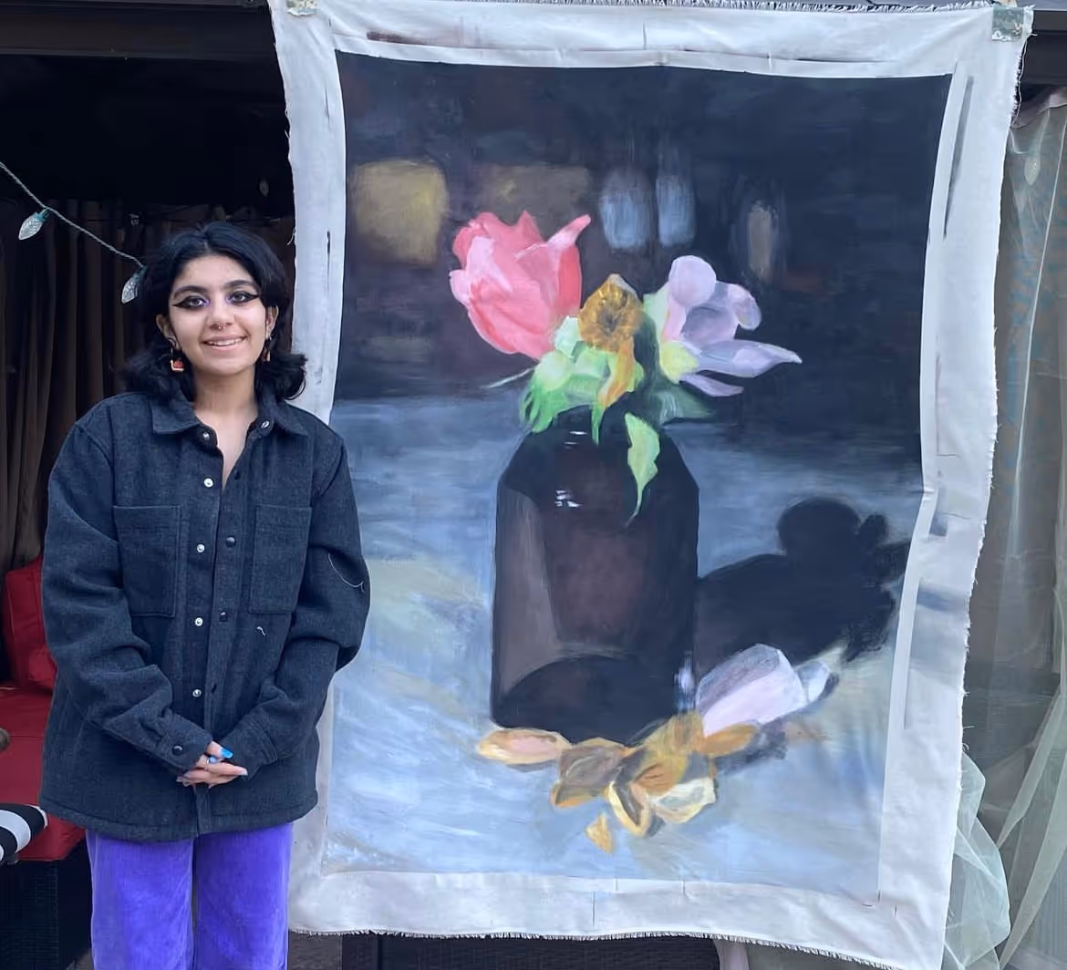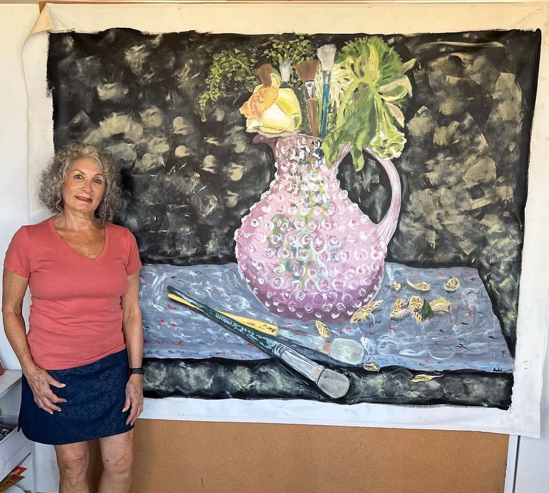 Painting a bouquet of dying flowers on a giant canvas in oils or acrylic, with a personal message, exploring the image of a wilting bouquet as a metaphor. Wilting flowers from your own staged photograph. How to age flowers quickly: leave fresh flowers without water or put them in hot water. Create a unique background. Stage the light. Concepts of grief, lamentation, introspection, remembrance, loss, passage of time, aging, lost love, memento mori, vanitas, etc.