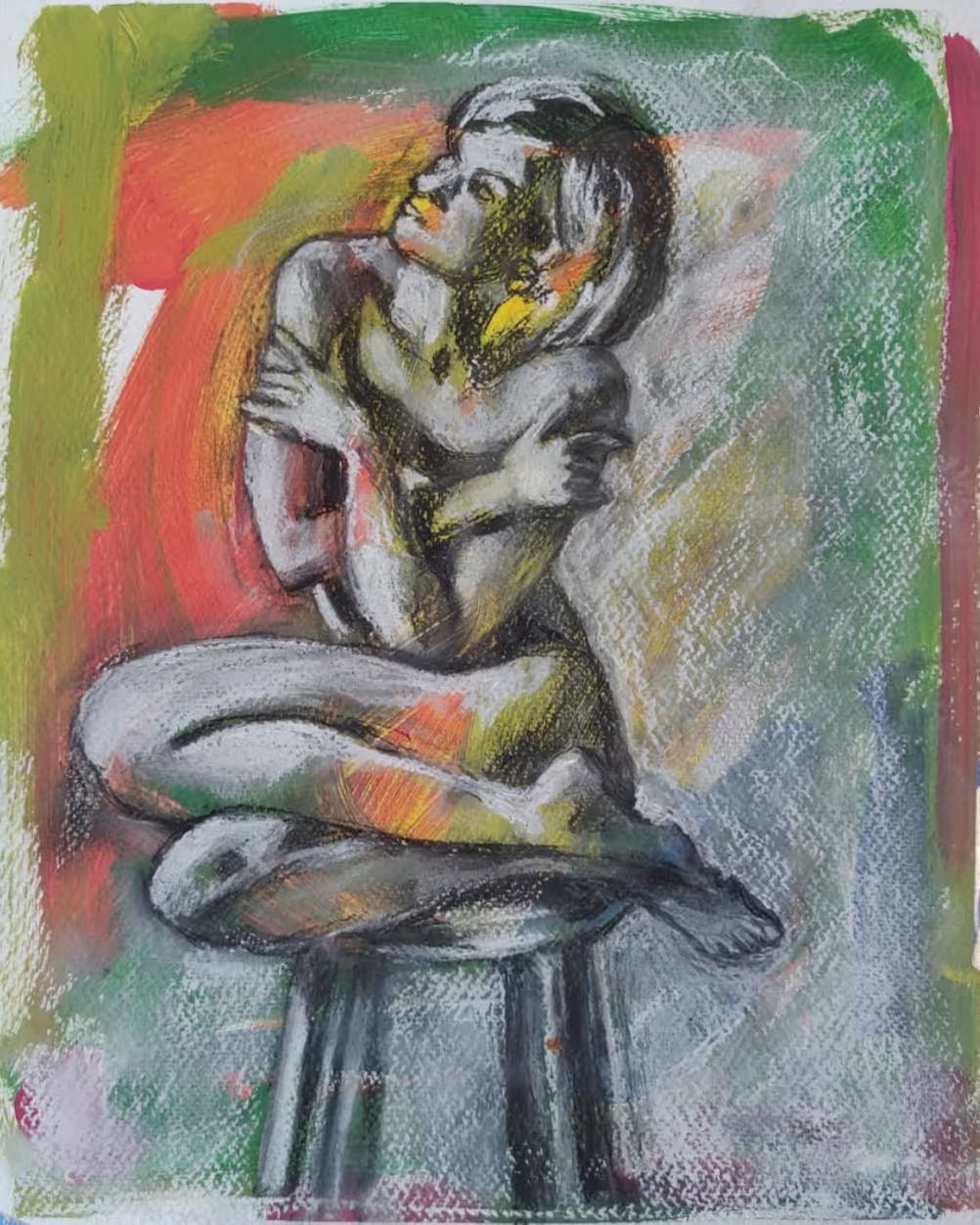 In these four sessions of figure drawing, you will be guided through making four colorful figure drawings, using only black and white soft pastels or conte. The size of paper is your choice, but the more ambitious can choose larger paper. This is a mixed media project where you will be utilizing several mediums, including water-based, so make sure that your paper is heavy enough. Sketch paper or drawing paper is not appropriate. We will start with four abstract backgrounds and then draw a nude over them. This layered medium will demonstrate to you the almost magical serendipity that happens when the two layers meet: your colors of the underpainting show up in the right places of the drawing!