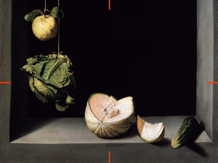 Finish your still life from class if you haven't yet, noticing lights and shadows. Squint often, both at your photo reference and your drawing to see how light or dark areas should be. Your drawing from a painting by Juan Sanchez Cótan, titled Still Life with Quince, Cabbage, Melon, and Cucumber, made in c. 1602.