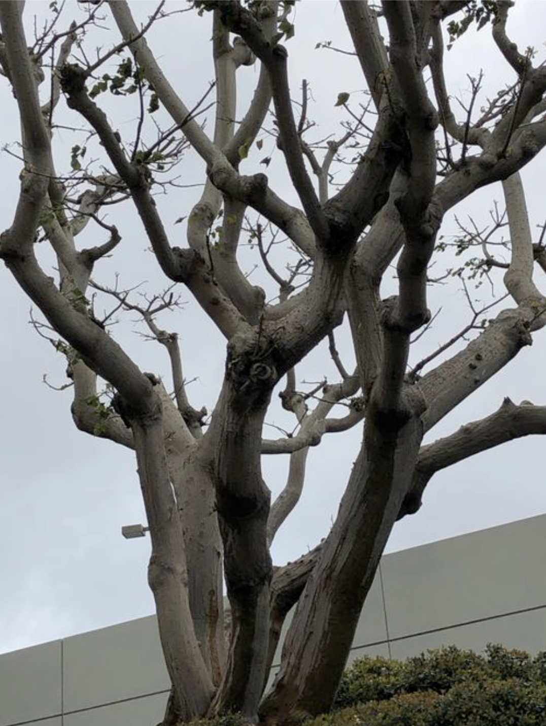 The best way to recreate this image is by drawing the negative shapes around the branches and between branches. “Negative shapes” are the spaces that you see between branches. Draw the largest areas first, to make composing more manageable, before addressing the details. You can ignore the leaves and background information and just draw the edges of the branches by means of the negative shapes.